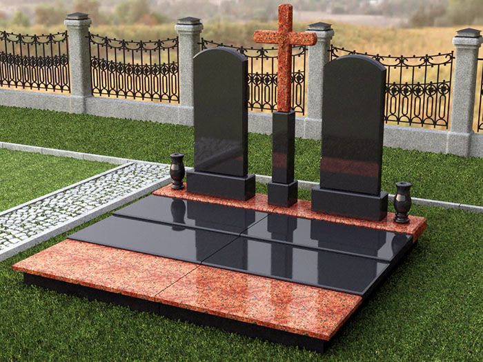 Элитный гранитный памятник на двоих из двух цветов гранита - черного и красного.