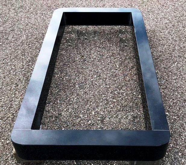 Открытый прямой цветник из карельского гранита с закругленными углами.